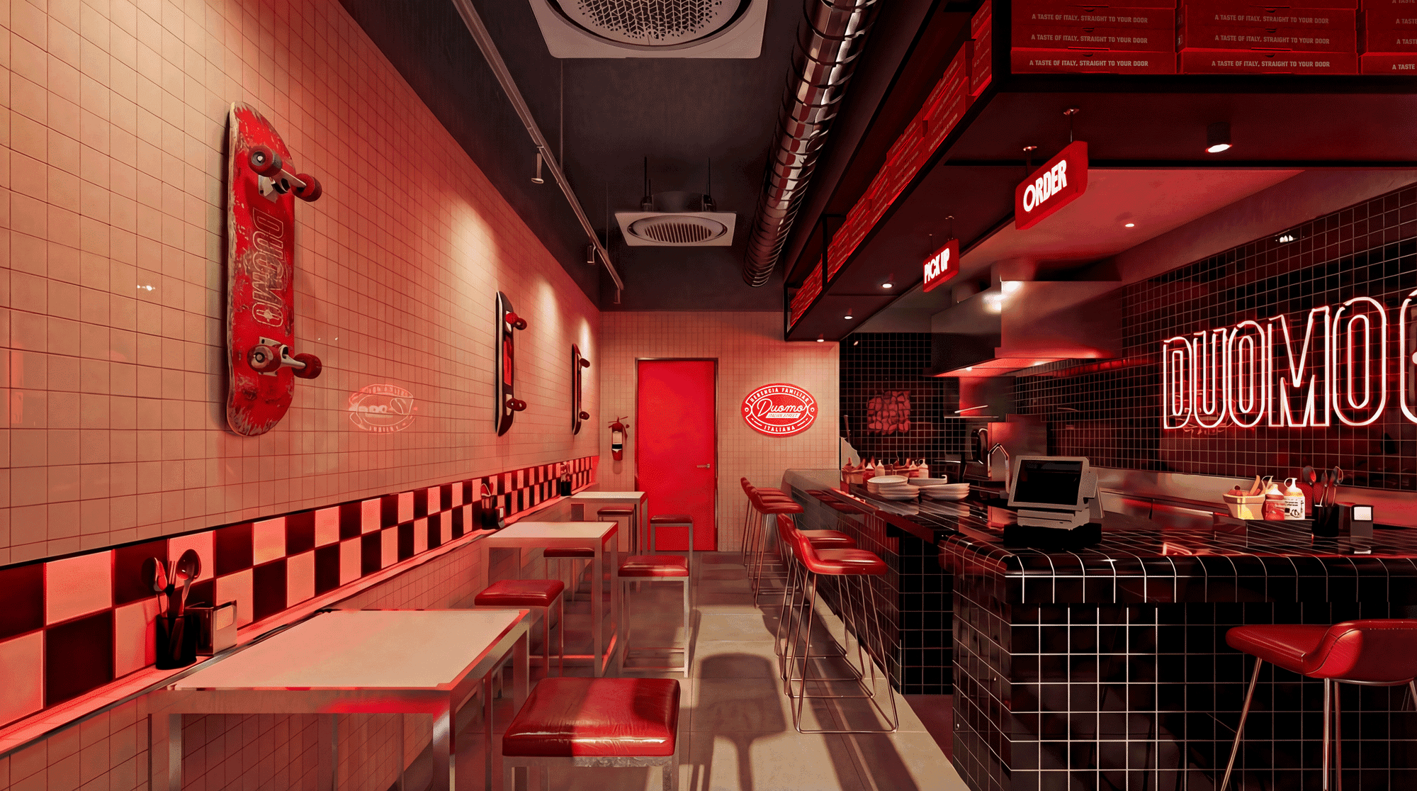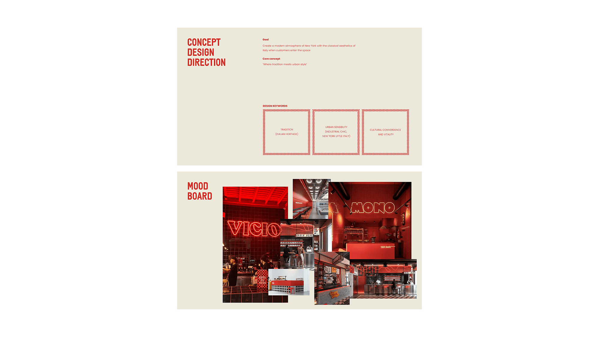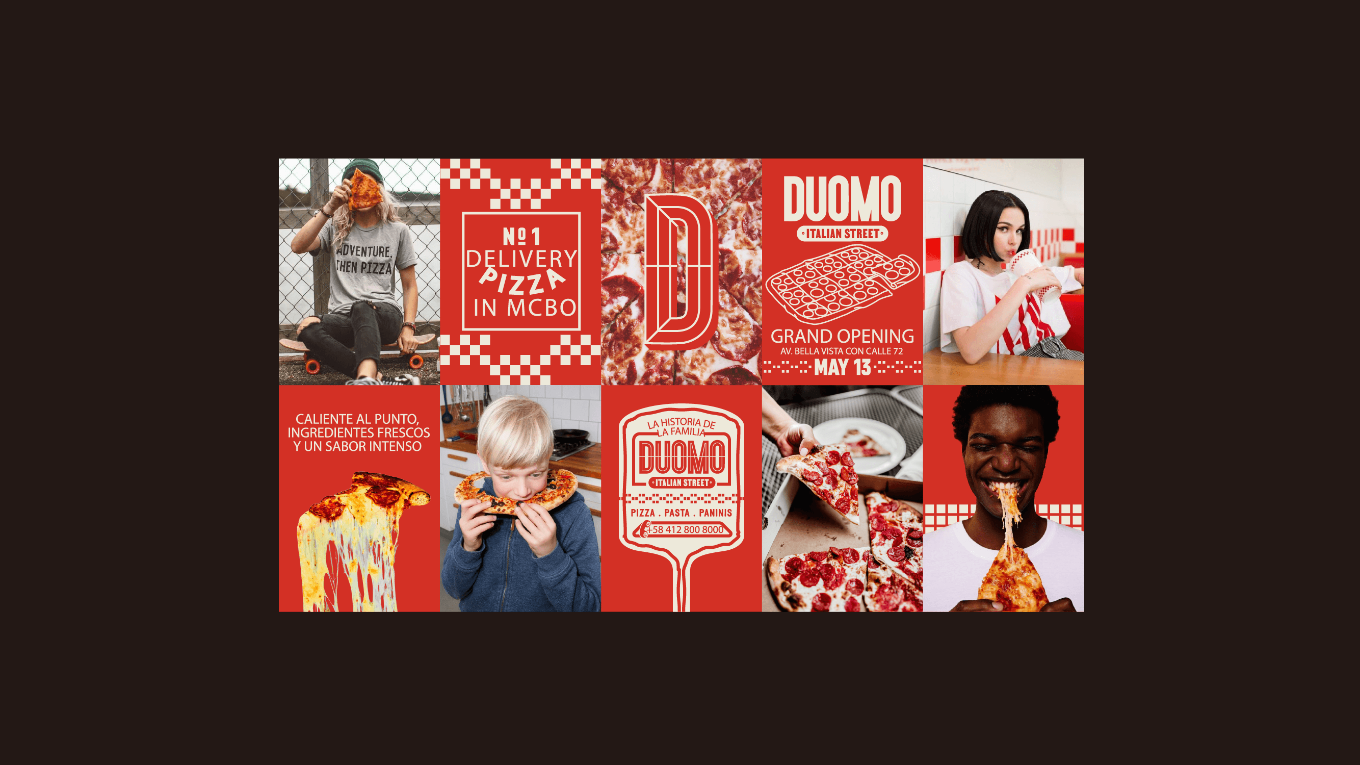 마라카이보-베네수엘라 중심부에서 배달 형식으로 운영되는 캐주얼 피자 가게입니다. 이 이름은 이탈리아 성당의 웅장함과 조화를 불러일으킵니다. 이 성당들이 사방에서 사람들을 끌어모으는 것처럼, 우리 피자 가게는 수백 년 된 이탈리아 전통과 문화의 생동감 넘치는 융합을 하나의 조각 안에 결합합니다. 진정성과 도시 에너지가 어우러진 이탈리아 거리의 콘셉트를 담아 이탈리아의 매력적인 자갈길로 안내하는 동시에 독특한 문화의 혼합을 탐험할 수 있는 포털이 되었습니다. "전통과 도시 스타일이 만나는 곳" 시각적 콘셉트를 통해 이러한 문화의 융합을 반영하고자 했습니다. 뉴욕의 리틀 이탈리아의 활기찬 거리를 연상시키는 산업적 시크한 분위기와 이탈리아의 시대를 초월한 그래픽 유산이 얽혀 있다고 상상해 보세요. 두오모가 형성한 것은 바로 이 매혹적인 유산의 교차로에서입니다. 그 결과 전통과 현대 사이의 간극을 메우는 시각적 정체성이 탄생했습니다.